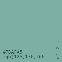 Цвет #7DAFA5 в цветовой модели RGB обозначается тремя октетами (125, 175, 165) в десятичном формате и #7DAFA5 в шестнадцатиричном (hex) формате, которые являются интенсивностью красного 125 (hex 7D), интенсивность зелёного 175 (hex AF) и интенсивность синего 165 (hex A5).