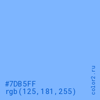 Цвет #7DB5FF в цветовой модели RGB обозначается тремя октетами (125, 181, 255) в десятичном формате и #7DB5FF в шестнадцатиричном (hex) формате, которые являются интенсивностью красного 125 (hex 7D), интенсивность зелёного 181 (hex B5) и интенсивность синего 255 (hex FF).