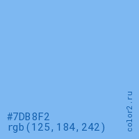 Цвет #7DB8F2 в цветовой модели RGB обозначается тремя октетами (125, 184, 242) в десятичном формате и #7DB8F2 в шестнадцатиричном (hex) формате, которые являются интенсивностью красного 125 (hex 7D), интенсивность зелёного 184 (hex B8) и интенсивность синего 242 (hex F2).