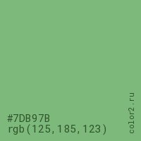 Цвет #7DB97B в цветовой модели RGB обозначается тремя октетами (125, 185, 123) в десятичном формате и #7DB97B в шестнадцатиричном (hex) формате, которые являются интенсивностью красного 125 (hex 7D), интенсивность зелёного 185 (hex B9) и интенсивность синего 123 (hex 7B).