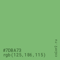 Цвет #7DBA73 в цветовой модели RGB обозначается тремя октетами (125, 186, 115) в десятичном формате и #7DBA73 в шестнадцатиричном (hex) формате, которые являются интенсивностью красного 125 (hex 7D), интенсивность зелёного 186 (hex BA) и интенсивность синего 115 (hex 73).