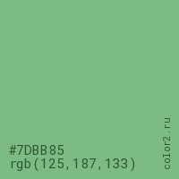 Цвет #7DBB85 в цветовой модели RGB обозначается тремя октетами (125, 187, 133) в десятичном формате и #7DBB85 в шестнадцатиричном (hex) формате, которые являются интенсивностью красного 125 (hex 7D), интенсивность зелёного 187 (hex BB) и интенсивность синего 133 (hex 85).