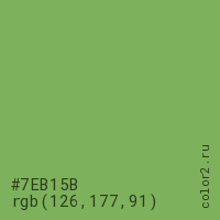 Цвет #7EB15B в цветовой модели RGB обозначается тремя октетами (126, 177, 91) в десятичном формате и #7EB15B в шестнадцатиричном (hex) формате, которые являются интенсивностью красного 126 (hex 7E), интенсивность зелёного 177 (hex B1) и интенсивность синего 91 (hex 5B).
