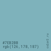 Цвет #7EB2BB в цветовой модели RGB обозначается тремя октетами (126, 178, 187) в десятичном формате и #7EB2BB в шестнадцатиричном (hex) формате, которые являются интенсивностью красного 126 (hex 7E), интенсивность зелёного 178 (hex B2) и интенсивность синего 187 (hex BB).