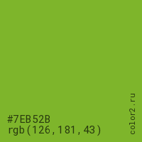 Цвет #7EB52B в цветовой модели RGB обозначается тремя октетами (126, 181, 43) в десятичном формате и #7EB52B в шестнадцатиричном (hex) формате, которые являются интенсивностью красного 126 (hex 7E), интенсивность зелёного 181 (hex B5) и интенсивность синего 43 (hex 2B).