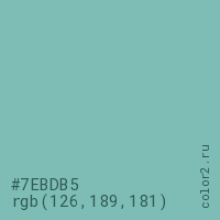 Цвет #7EBDB5 в цветовой модели RGB обозначается тремя октетами (126, 189, 181) в десятичном формате и #7EBDB5 в шестнадцатиричном (hex) формате, которые являются интенсивностью красного 126 (hex 7E), интенсивность зелёного 189 (hex BD) и интенсивность синего 181 (hex B5).