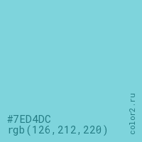 Цвет #7ED4DC в цветовой модели RGB обозначается тремя октетами (126, 212, 220) в десятичном формате и #7ED4DC в шестнадцатиричном (hex) формате, которые являются интенсивностью красного 126 (hex 7E), интенсивность зелёного 212 (hex D4) и интенсивность синего 220 (hex DC).
