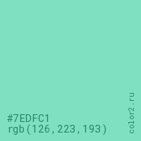 Цвет #7EDFC1 в цветовой модели RGB обозначается тремя октетами (126, 223, 193) в десятичном формате и #7EDFC1 в шестнадцатиричном (hex) формате, которые являются интенсивностью красного 126 (hex 7E), интенсивность зелёного 223 (hex DF) и интенсивность синего 193 (hex C1).
