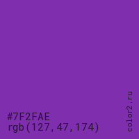 Цвет #7F2FAE в цветовой модели RGB обозначается тремя октетами (127, 47, 174) в десятичном формате и #7F2FAE в шестнадцатиричном (hex) формате, которые являются интенсивностью красного 127 (hex 7F), интенсивность зелёного 47 (hex 2F) и интенсивность синего 174 (hex AE).