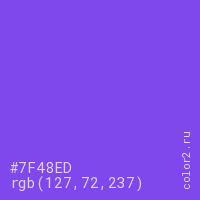 Цвет #7F48ED в цветовой модели RGB обозначается тремя октетами (127, 72, 237) в десятичном формате и #7F48ED в шестнадцатиричном (hex) формате, которые являются интенсивностью красного 127 (hex 7F), интенсивность зелёного 72 (hex 48) и интенсивность синего 237 (hex ED).
