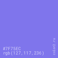 Цвет #7F75EC в цветовой модели RGB обозначается тремя октетами (127, 117, 236) в десятичном формате и #7F75EC в шестнадцатиричном (hex) формате, которые являются интенсивностью красного 127 (hex 7F), интенсивность зелёного 117 (hex 75) и интенсивность синего 236 (hex EC).