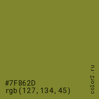 Цвет #7F862D в цветовой модели RGB обозначается тремя октетами (127, 134, 45) в десятичном формате и #7F862D в шестнадцатиричном (hex) формате, которые являются интенсивностью красного 127 (hex 7F), интенсивность зелёного 134 (hex 86) и интенсивность синего 45 (hex 2D).