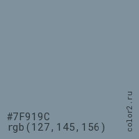 Цвет #7F919C в цветовой модели RGB обозначается тремя октетами (127, 145, 156) в десятичном формате и #7F919C в шестнадцатиричном (hex) формате, которые являются интенсивностью красного 127 (hex 7F), интенсивность зелёного 145 (hex 91) и интенсивность синего 156 (hex 9C).