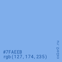 Цвет #7FAEEB в цветовой модели RGB обозначается тремя октетами (127, 174, 235) в десятичном формате и #7FAEEB в шестнадцатиричном (hex) формате, которые являются интенсивностью красного 127 (hex 7F), интенсивность зелёного 174 (hex AE) и интенсивность синего 235 (hex EB).