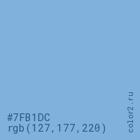 Цвет #7FB1DC в цветовой модели RGB обозначается тремя октетами (127, 177, 220) в десятичном формате и #7FB1DC в шестнадцатиричном (hex) формате, которые являются интенсивностью красного 127 (hex 7F), интенсивность зелёного 177 (hex B1) и интенсивность синего 220 (hex DC).