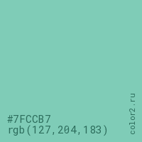 Цвет #7FCCB7 в цветовой модели RGB обозначается тремя октетами (127, 204, 183) в десятичном формате и #7FCCB7 в шестнадцатиричном (hex) формате, которые являются интенсивностью красного 127 (hex 7F), интенсивность зелёного 204 (hex CC) и интенсивность синего 183 (hex B7).