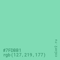 Цвет #7FDBB1 в цветовой модели RGB обозначается тремя октетами (127, 219, 177) в десятичном формате и #7FDBB1 в шестнадцатиричном (hex) формате, которые являются интенсивностью красного 127 (hex 7F), интенсивность зелёного 219 (hex DB) и интенсивность синего 177 (hex B1).