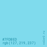 Цвет #7FDBED в цветовой модели RGB обозначается тремя октетами (127, 219, 237) в десятичном формате и #7FDBED в шестнадцатиричном (hex) формате, которые являются интенсивностью красного 127 (hex 7F), интенсивность зелёного 219 (hex DB) и интенсивность синего 237 (hex ED).