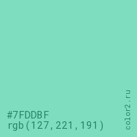 Цвет #7FDDBF в цветовой модели RGB обозначается тремя октетами (127, 221, 191) в десятичном формате и #7FDDBF в шестнадцатиричном (hex) формате, которые являются интенсивностью красного 127 (hex 7F), интенсивность зелёного 221 (hex DD) и интенсивность синего 191 (hex BF).