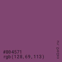 Цвет #804571 в цветовой модели RGB обозначается тремя октетами (128, 69, 113) в десятичном формате и #804571 в шестнадцатиричном (hex) формате, которые являются интенсивностью красного 128 (hex 80), интенсивность зелёного 69 (hex 45) и интенсивность синего 113 (hex 71).