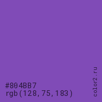 Цвет #804BB7 в цветовой модели RGB обозначается тремя октетами (128, 75, 183) в десятичном формате и #804BB7 в шестнадцатиричном (hex) формате, которые являются интенсивностью красного 128 (hex 80), интенсивность зелёного 75 (hex 4B) и интенсивность синего 183 (hex B7).