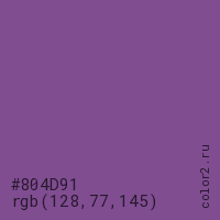 Цвет #804D91 в цветовой модели RGB обозначается тремя октетами (128, 77, 145) в десятичном формате и #804D91 в шестнадцатиричном (hex) формате, которые являются интенсивностью красного 128 (hex 80), интенсивность зелёного 77 (hex 4D) и интенсивность синего 145 (hex 91).