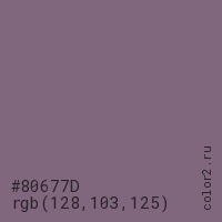 | RGB | rgb(128, 103, 125) |