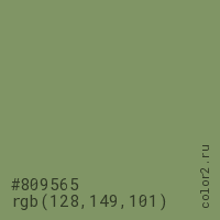 Цвет #809565 в цветовой модели RGB обозначается тремя октетами (128, 149, 101) в десятичном формате и #809565 в шестнадцатиричном (hex) формате, которые являются интенсивностью красного 128 (hex 80), интенсивность зелёного 149 (hex 95) и интенсивность синего 101 (hex 65).