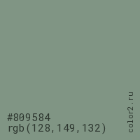 Цвет #809584 в цветовой модели RGB обозначается тремя октетами (128, 149, 132) в десятичном формате и #809584 в шестнадцатиричном (hex) формате, которые являются интенсивностью красного 128 (hex 80), интенсивность зелёного 149 (hex 95) и интенсивность синего 132 (hex 84).
