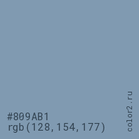 Цвет #809AB1 в цветовой модели RGB обозначается тремя октетами (128, 154, 177) в десятичном формате и #809AB1 в шестнадцатиричном (hex) формате, которые являются интенсивностью красного 128 (hex 80), интенсивность зелёного 154 (hex 9A) и интенсивность синего 177 (hex B1).