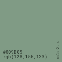 В представлении HSL цвет #809B85 принимает значения тона (hue) 131, насыщенности (saturation) 12%, светлости (lightness) 55%.
