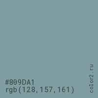 Цвет #809DA1 в цветовой модели RGB обозначается тремя октетами (128, 157, 161) в десятичном формате и #809DA1 в шестнадцатиричном (hex) формате, которые являются интенсивностью красного 128 (hex 80), интенсивность зелёного 157 (hex 9D) и интенсивность синего 161 (hex A1).