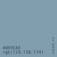 Цвет #809EAE в цветовой модели RGB обозначается тремя октетами (128, 158, 174) в десятичном формате и #809EAE в шестнадцатиричном (hex) формате, которые являются интенсивностью красного 128 (hex 80), интенсивность зелёного 158 (hex 9E) и интенсивность синего 174 (hex AE).