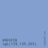 Цвет #809FCB в цветовой модели RGB обозначается тремя октетами (128, 159, 203) в десятичном формате и #809FCB в шестнадцатиричном (hex) формате, которые являются интенсивностью красного 128 (hex 80), интенсивность зелёного 159 (hex 9F) и интенсивность синего 203 (hex CB).