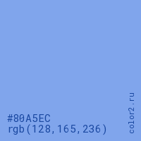 Цвет #80A5EC в цветовой модели RGB обозначается тремя октетами (128, 165, 236) в десятичном формате и #80A5EC в шестнадцатиричном (hex) формате, которые являются интенсивностью красного 128 (hex 80), интенсивность зелёного 165 (hex A5) и интенсивность синего 236 (hex EC).