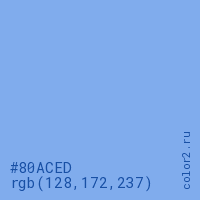Цвет #80ACED в цветовой модели RGB обозначается тремя октетами (128, 172, 237) в десятичном формате и #80ACED в шестнадцатиричном (hex) формате, которые являются интенсивностью красного 128 (hex 80), интенсивность зелёного 172 (hex AC) и интенсивность синего 237 (hex ED).