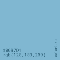 Цвет #80B7D1 в цветовой модели RGB обозначается тремя октетами (128, 183, 209) в десятичном формате и #80B7D1 в шестнадцатиричном (hex) формате, которые являются интенсивностью красного 128 (hex 80), интенсивность зелёного 183 (hex B7) и интенсивность синего 209 (hex D1).