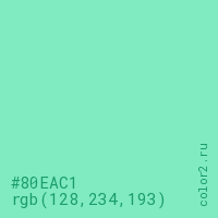 Цвет #80EAC1 в цветовой модели RGB обозначается тремя октетами (128, 234, 193) в десятичном формате и #80EAC1 в шестнадцатиричном (hex) формате, которые являются интенсивностью красного 128 (hex 80), интенсивность зелёного 234 (hex EA) и интенсивность синего 193 (hex C1).