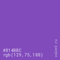 Цвет #814BBC в цветовой модели RGB обозначается тремя октетами (129, 75, 188) в десятичном формате и #814BBC в шестнадцатиричном (hex) формате, которые являются интенсивностью красного 129 (hex 81), интенсивность зелёного 75 (hex 4B) и интенсивность синего 188 (hex BC).