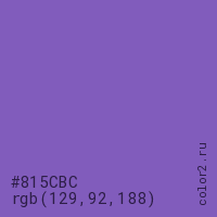 Цвет #815CBC в цветовой модели RGB обозначается тремя октетами (129, 92, 188) в десятичном формате и #815CBC в шестнадцатиричном (hex) формате, которые являются интенсивностью красного 129 (hex 81), интенсивность зелёного 92 (hex 5C) и интенсивность синего 188 (hex BC).