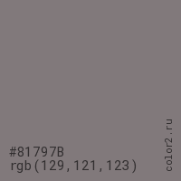 Цвет #81797B в цветовой модели RGB обозначается тремя октетами (129, 121, 123) в десятичном формате и #81797B в шестнадцатиричном (hex) формате, которые являются интенсивностью красного 129 (hex 81), интенсивность зелёного 121 (hex 79) и интенсивность синего 123 (hex 7B).
