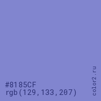 Цвет #8185CF в цветовой модели RGB обозначается тремя октетами (129, 133, 207) в десятичном формате и #8185CF в шестнадцатиричном (hex) формате, которые являются интенсивностью красного 129 (hex 81), интенсивность зелёного 133 (hex 85) и интенсивность синего 207 (hex CF).
