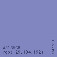 Цвет #8186C0 в цветовой модели RGB обозначается тремя октетами (129, 134, 192) в десятичном формате и #8186C0 в шестнадцатиричном (hex) формате, которые являются интенсивностью красного 129 (hex 81), интенсивность зелёного 134 (hex 86) и интенсивность синего 192 (hex C0).