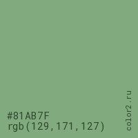 Цвет #81AB7F в цветовой модели RGB обозначается тремя октетами (129, 171, 127) в десятичном формате и #81AB7F в шестнадцатиричном (hex) формате, которые являются интенсивностью красного 129 (hex 81), интенсивность зелёного 171 (hex AB) и интенсивность синего 127 (hex 7F).