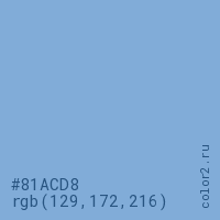 Цвет #81ACD8 в цветовой модели RGB обозначается тремя октетами (129, 172, 216) в десятичном формате и #81ACD8 в шестнадцатиричном (hex) формате, которые являются интенсивностью красного 129 (hex 81), интенсивность зелёного 172 (hex AC) и интенсивность синего 216 (hex D8).