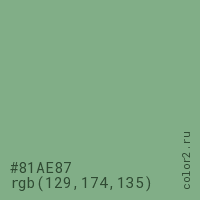 Цвет #81AE87 в цветовой модели RGB обозначается тремя октетами (129, 174, 135) в десятичном формате и #81AE87 в шестнадцатиричном (hex) формате, которые являются интенсивностью красного 129 (hex 81), интенсивность зелёного 174 (hex AE) и интенсивность синего 135 (hex 87).