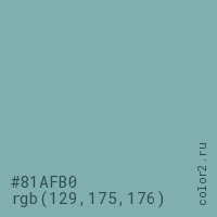 Цвет #81AFB0 в цветовой модели RGB обозначается тремя октетами (129, 175, 176) в десятичном формате и #81AFB0 в шестнадцатиричном (hex) формате, которые являются интенсивностью красного 129 (hex 81), интенсивность зелёного 175 (hex AF) и интенсивность синего 176 (hex B0).