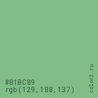 Цвет #81BC89 в цветовой модели RGB обозначается тремя октетами (129, 188, 137) в десятичном формате и #81BC89 в шестнадцатиричном (hex) формате, которые являются интенсивностью красного 129 (hex 81), интенсивность зелёного 188 (hex BC) и интенсивность синего 137 (hex 89).