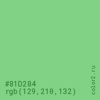 Цвет #81D284 в цветовой модели RGB обозначается тремя октетами (129, 210, 132) в десятичном формате и #81D284 в шестнадцатиричном (hex) формате, которые являются интенсивностью красного 129 (hex 81), интенсивность зелёного 210 (hex D2) и интенсивность синего 132 (hex 84).