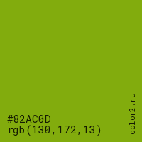 Цвет #82AC0D в цветовой модели RGB обозначается тремя октетами (130, 172, 13) в десятичном формате и #82AC0D в шестнадцатиричном (hex) формате, которые являются интенсивностью красного 130 (hex 82), интенсивность зелёного 172 (hex AC) и интенсивность синего 13 (hex 0D).